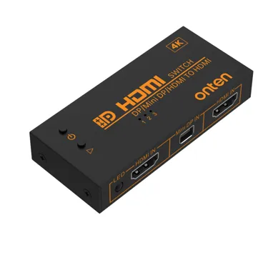 Der HDMI-Switch OTN-US331 von Onten ist eine praktische Lösung, um drei verschiedene Videoquellen mit einem einzigen HDMI-Bildschirm zu verbinden. Mit Eingängen für Mini DisplayPort, DisplayPort und HDMI lässt sich die gewünschte Quelle einfach über einen Knopf auswählen.