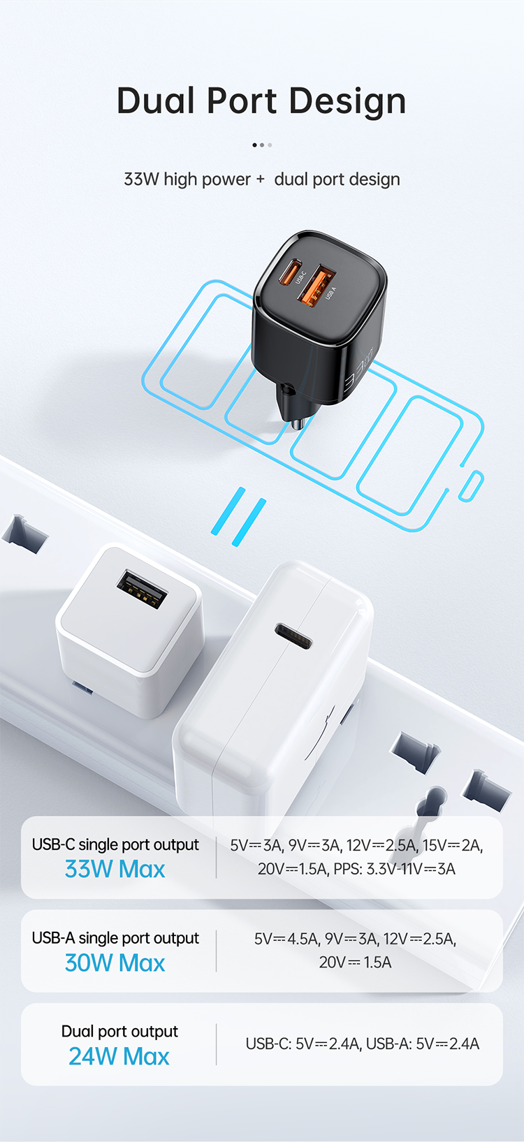 5V⎓3A, 9V⎓3A, 12V⎓2.5A, 15V⎓2A, 20V⎓1.5A, PPS: 3.3V–11V⎓3A -