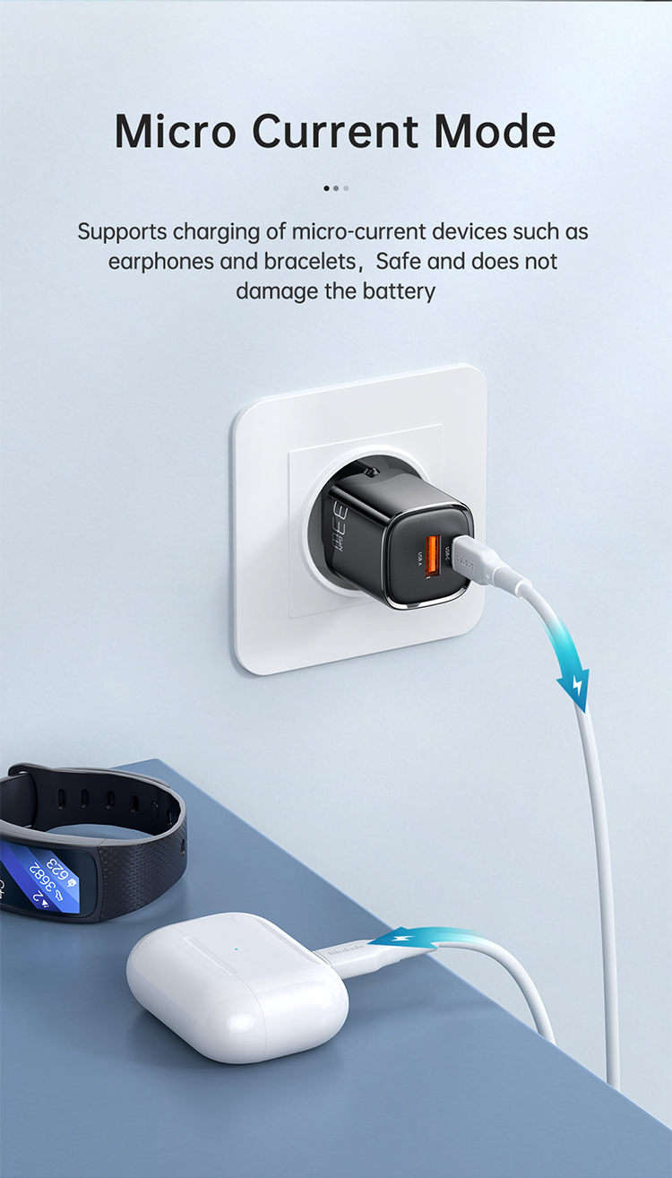 Der Charger ist mit mehreren Schutzmechanismen ausgestattet – inklusive Überspannungsschutz, Überstromschutz, Überhitzungsschutz und ESD-Schutz. Zudem unterstützt er Mikro-Strommodus für das sichere Laden von TWS-Kopfhörern und Smartwatches.