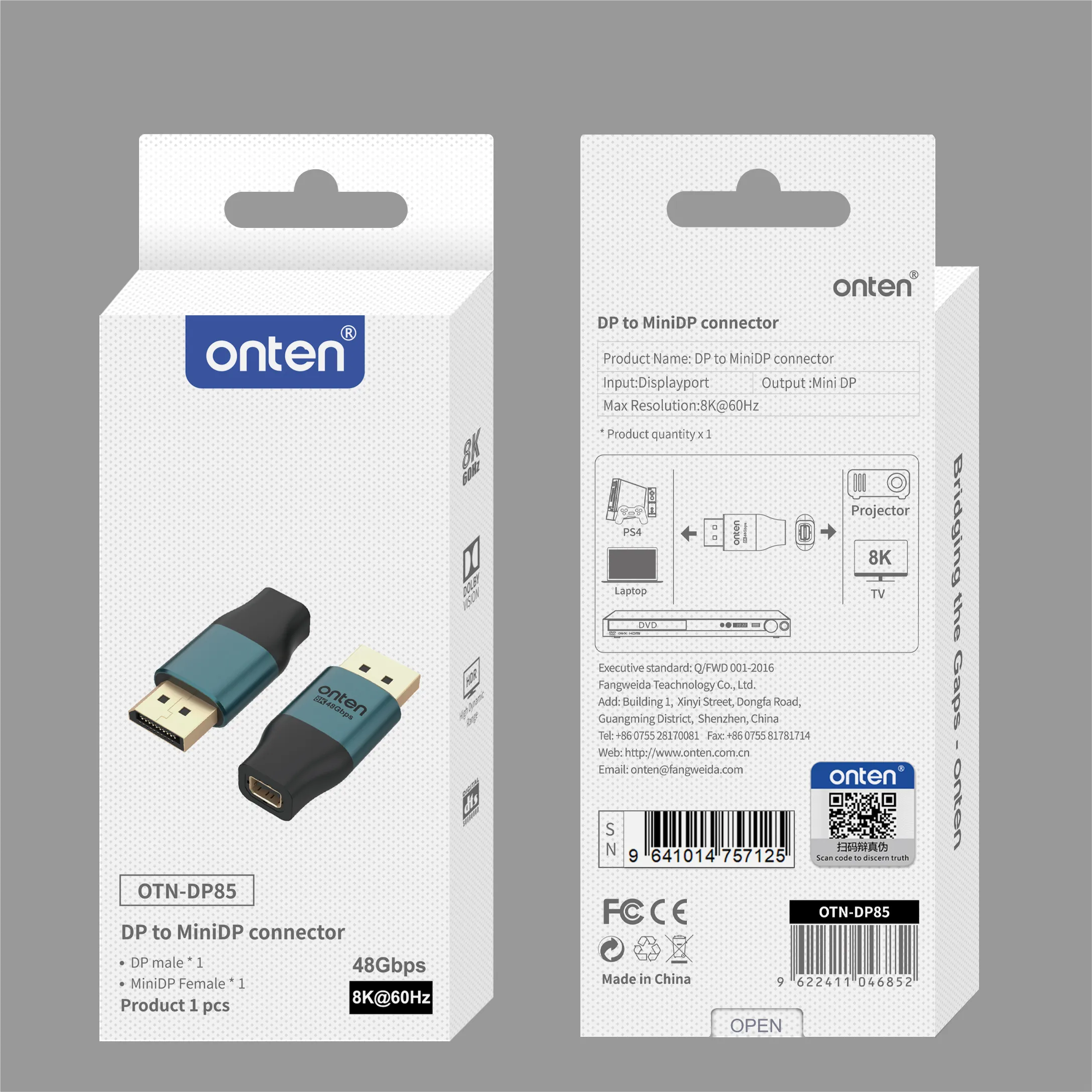 Der hochwertige Adapter OTN-DP85 von Onten ermöglicht die zuverlässige Umwandlung eines DisplayPort-Steckers in eine Mini DisplayPort-Buchse. Ideal für die Verbindung von PCs oder Grafikkarten mit MiniDP-Displays, Monitoren oder Projektoren.