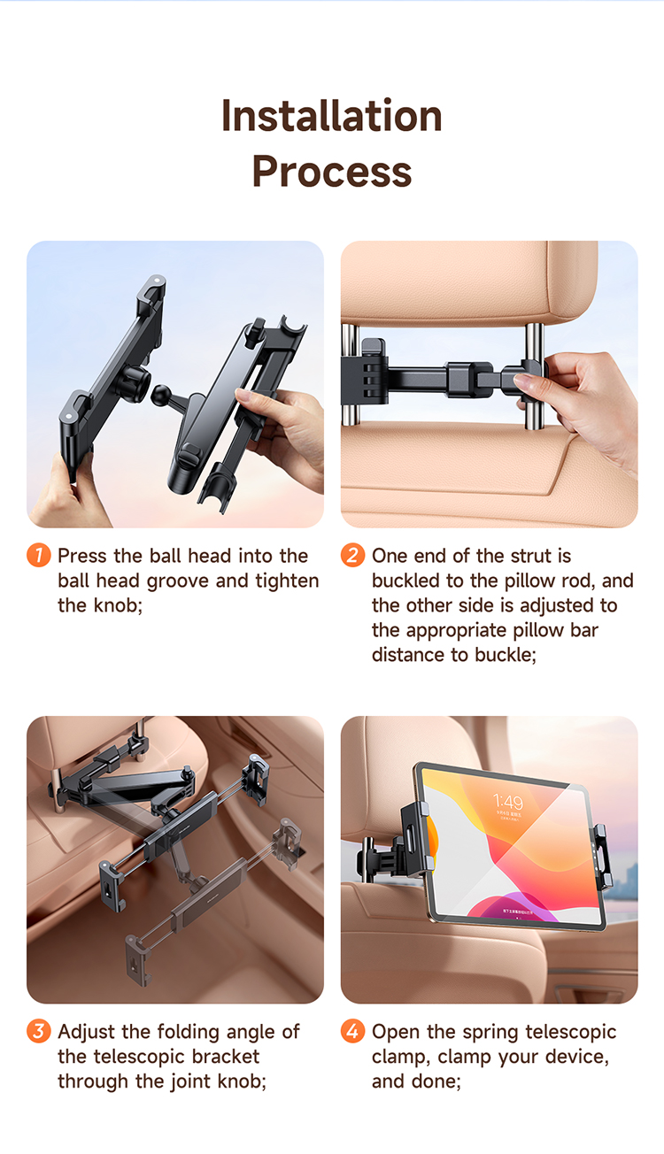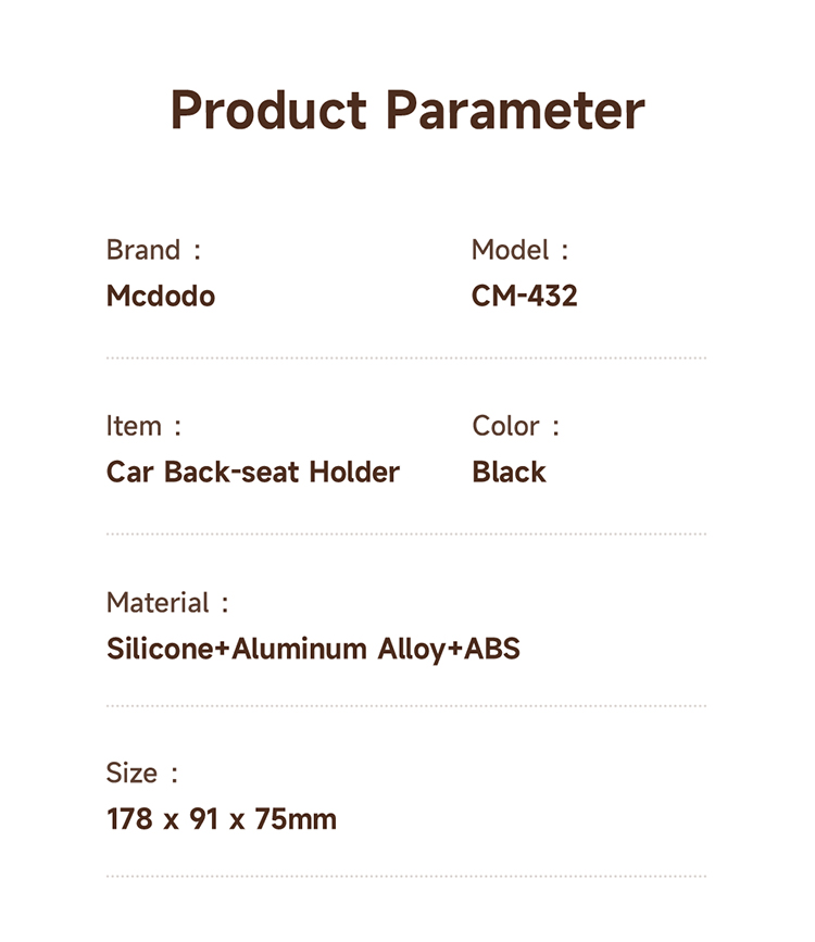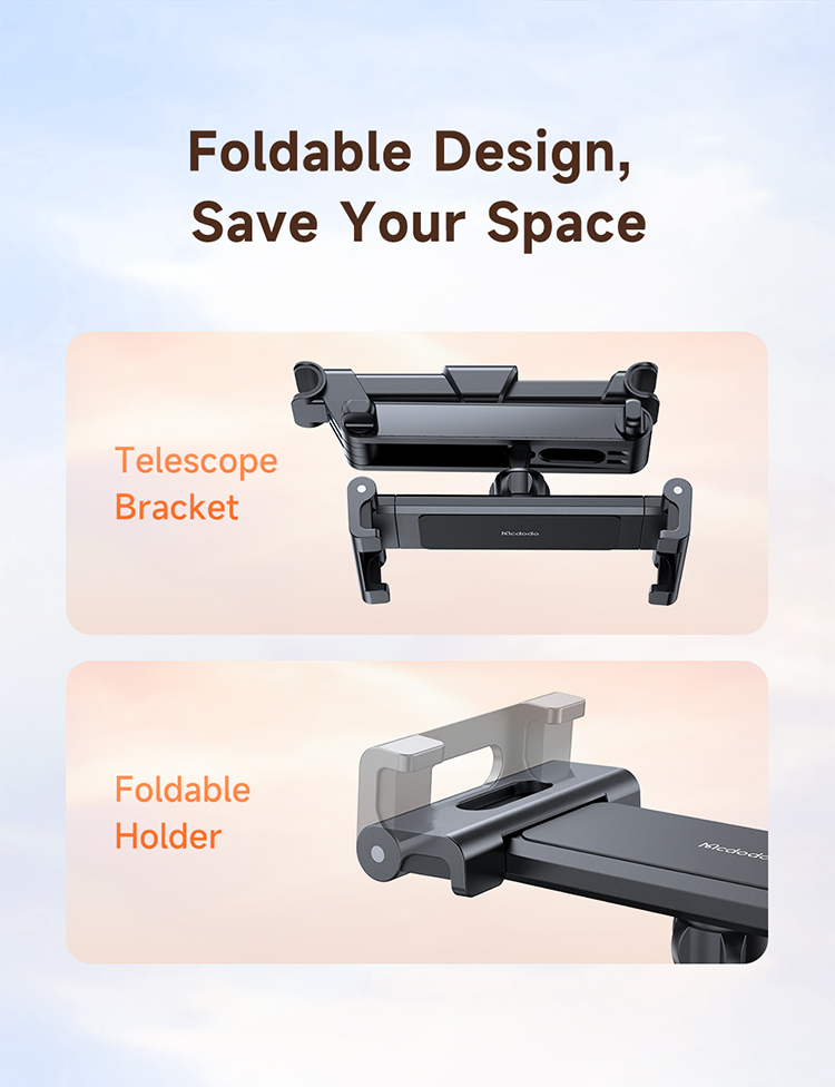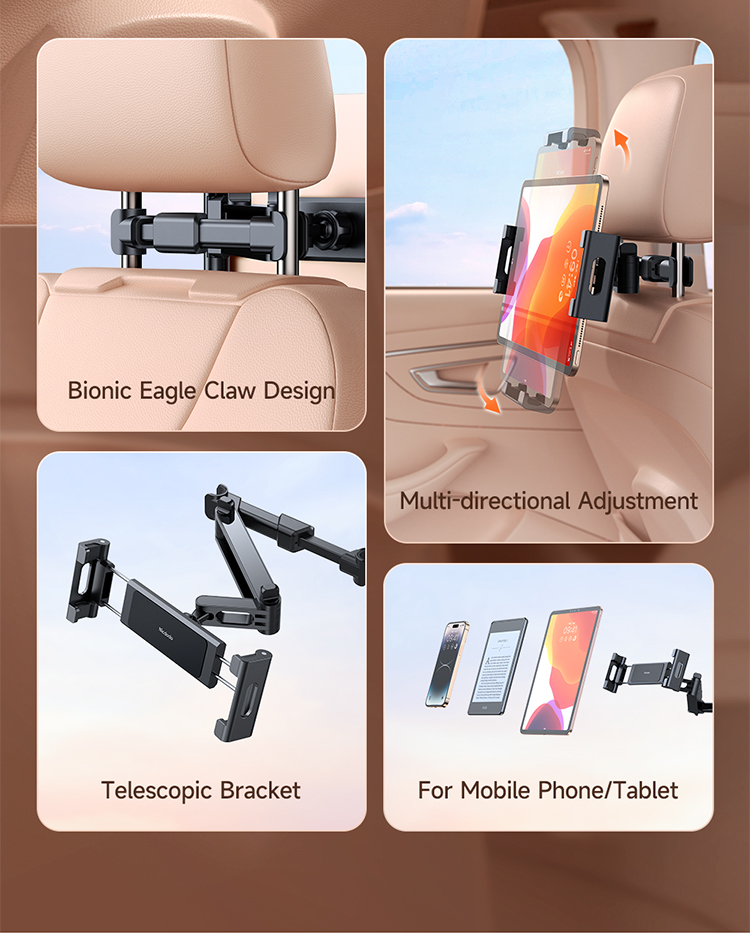 Die Mcdodo CM-4320 Tablet- und Smartphone-Halterung wurde speziell für die Kopfstütze im Auto entwickelt und ermöglicht ein angenehmes Unterhaltungserlebnis für Rücksitzpassagiere. Durch ihre mechanische Bauweise und stabile Struktur bleibt das Gerät auch während der Fahrt sicher fixiert.
