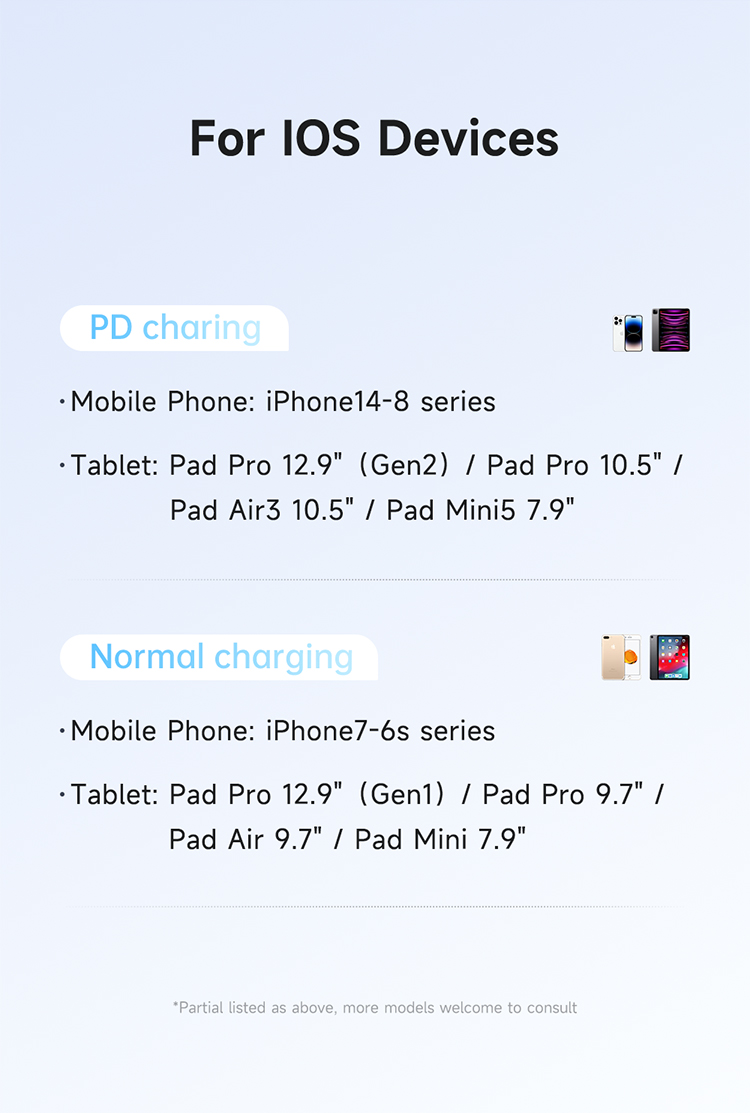 iPhone series: iPhone 8 to iPhone 14 (PD fast charging)