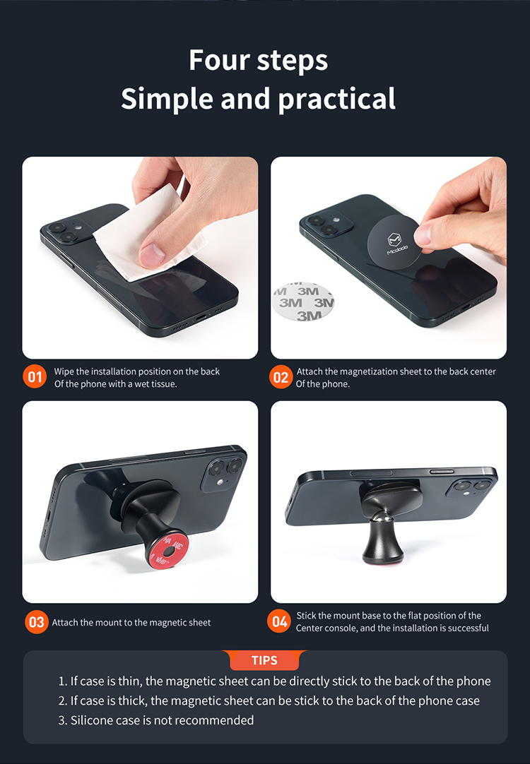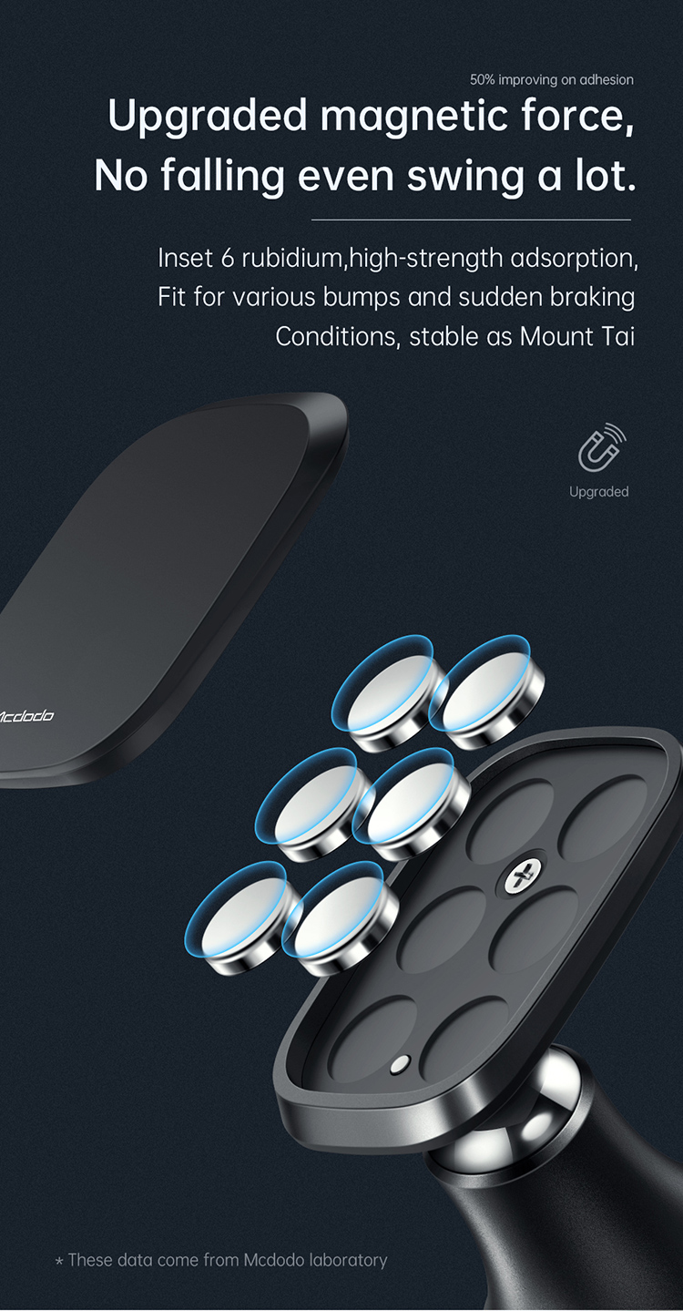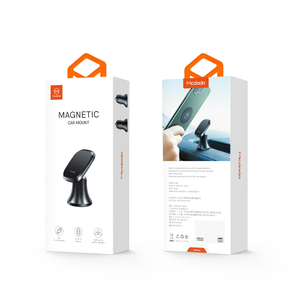 Die Mcdodo CM-8490 magnetische Handyhalterung vereint Stärke, Stabilität und Design. Durch die kompakte Standfuß-Konstruktion lässt sie sich einfach auf jeder glatten Fläche im Auto (z. B. Mittelkonsole oder Armaturenbrett) anbringen und frei positionieren.