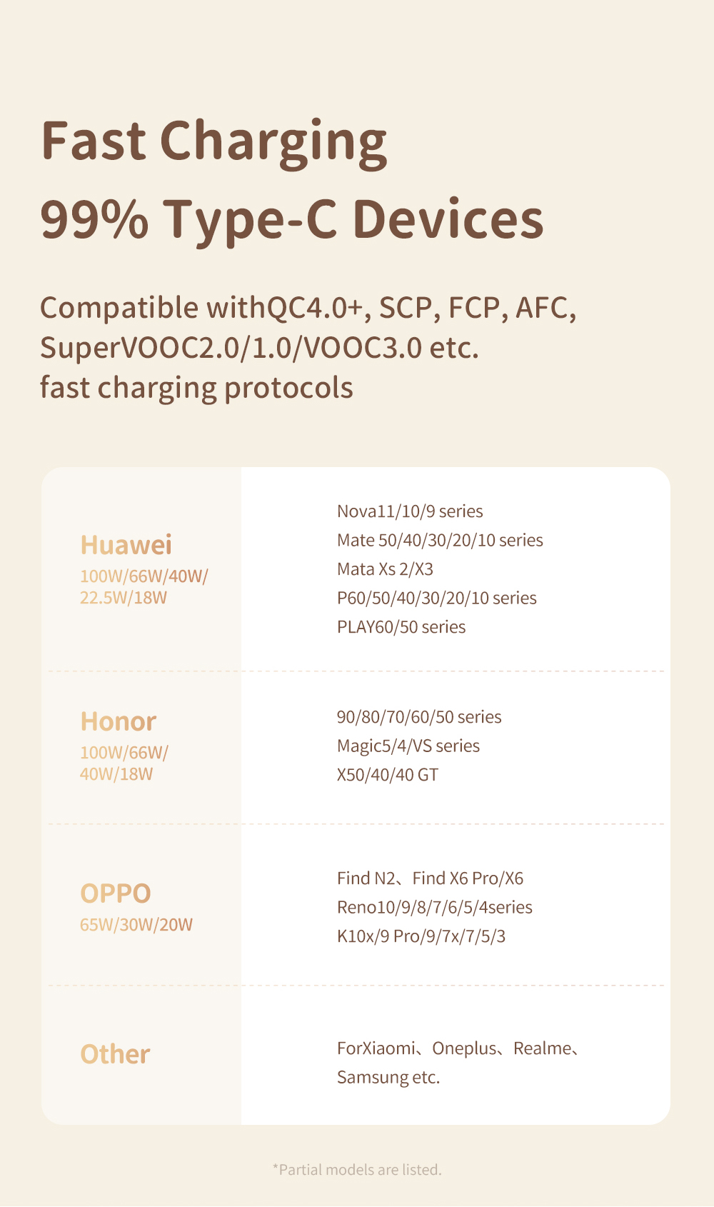 ✔ Breite Kompatibilität – Unterstützt Huawei SCP, Samsung AFC, OPPO VOOC, QC2.0/3.0/4.0 Schnellladeprotokolle.