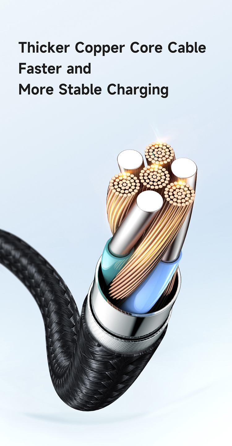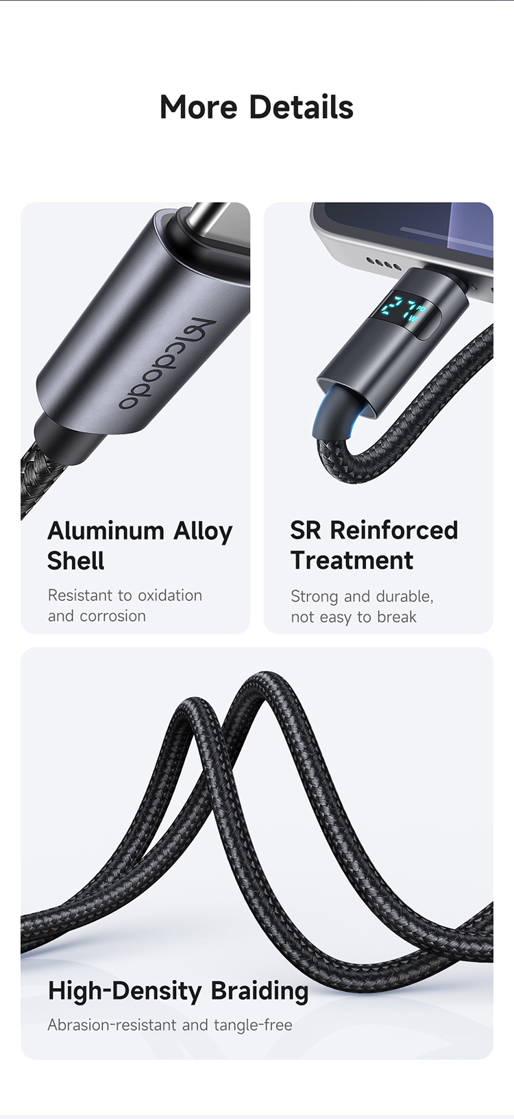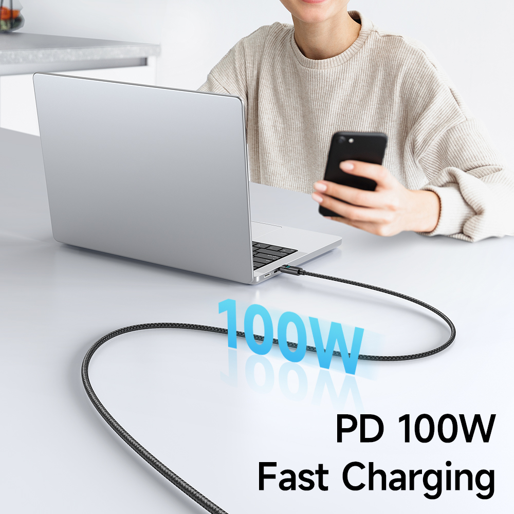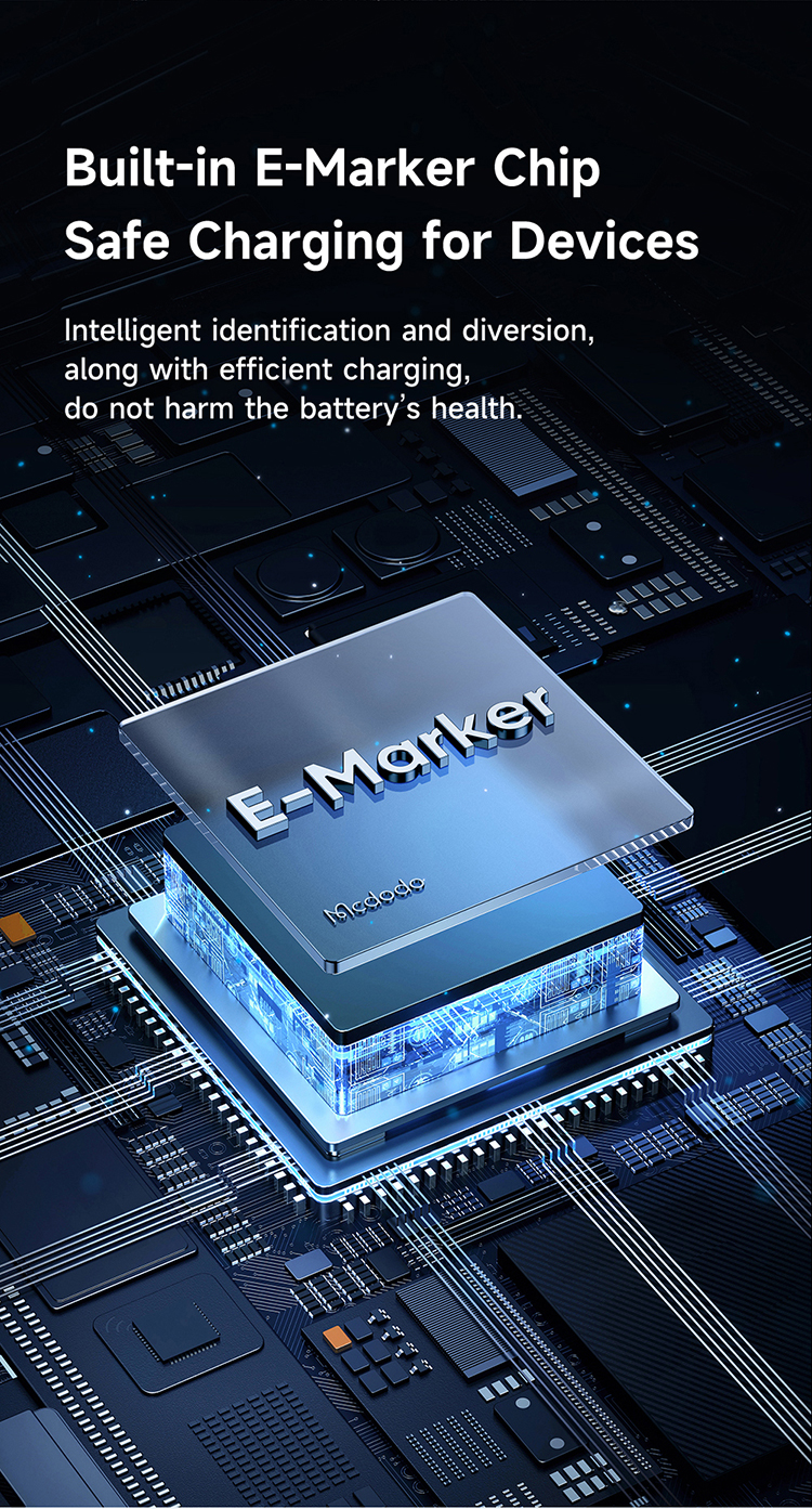 Das Kabel besteht aus einer hochwertigen Aluminiumlegierung mit geflochtenem Nylonmantel und verfügt über ein intelligentes E-Marker-Chip, das eine sichere und stabile Stromübertragung garantiert.