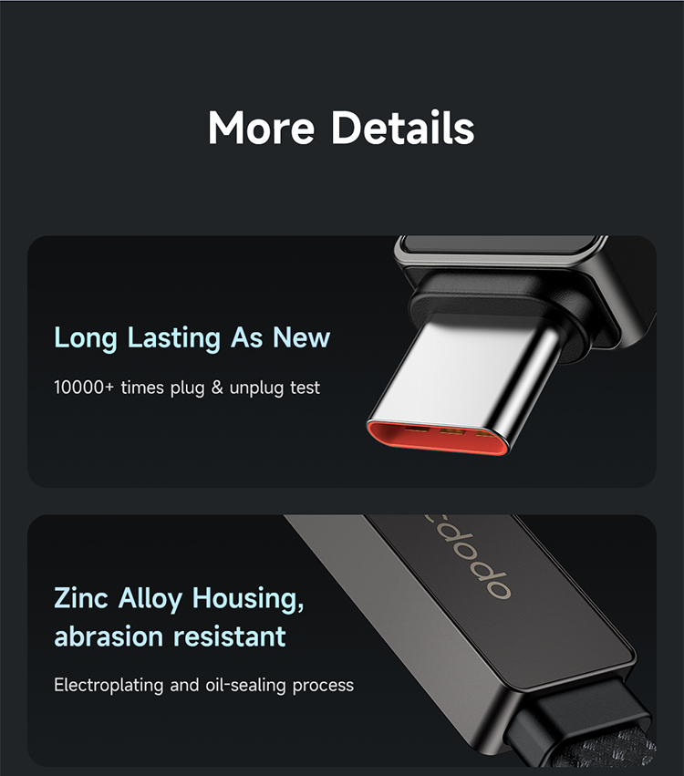 🧾 This 1.2-meter cable features a durable zinc alloy housing and nylon braided design. Supports up to 100W (5A) fast PD charging. The 9-level LED display shows real-time charging status. Reinforced 6-core copper wire ensures stable power transmission. Successfully passed over 10,000 bend tests and 8kg pull test.